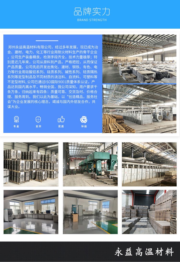 主营产品:水泥回转窑用硅莫砖、低导热三石砖、抗剥落高铝砖、耐碱砖和水泥窑各部位用耐火浇注料;玻璃窑用电熔锆刚玉砖、电熔莫来石砖、莫来石组合大砖、低气孔粘土砖和系列浇注料、捣打料、电熔铬刚玉、锆英石、硅线石系列烧结材料;有色冶金和电力石化用各类捣打料、低水泥浇注料、钢纤维增强浇注料、刚玉质浇注料和预制砖