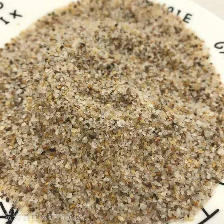 灵寿安达生产的石英砂产品经测试检验、其主要化学成份二氧化硅含量分别是:Sio2:99.46%一99.9%。Fe203:0.03%一0.015%。Al2O3 gt;0.03%。熔点:1350—1750摄氏度。比重:2.65。莫氏硬度在7以上。